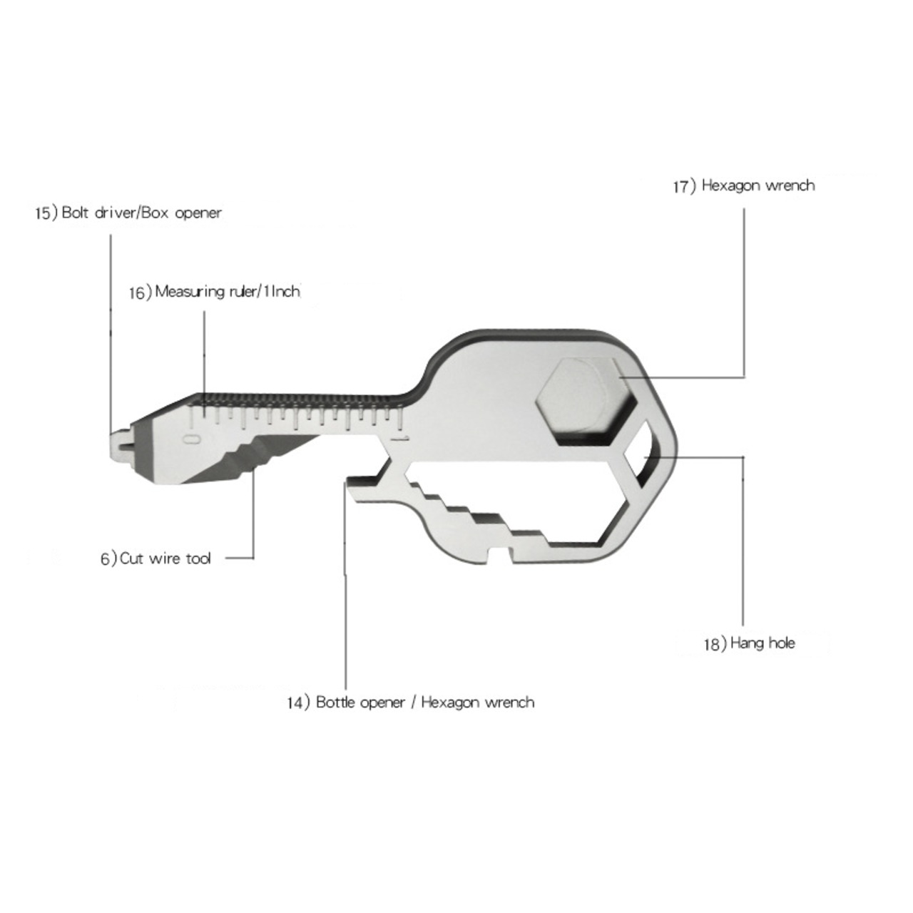 材質はステンレス鋼で、通常のキーサイズよりわずかに大きく、重さは23gと軽量です。生活の中でちょっとした作業に役立つ多機能ツールです。携帯に便利で、必要な時にすぐに使えます。